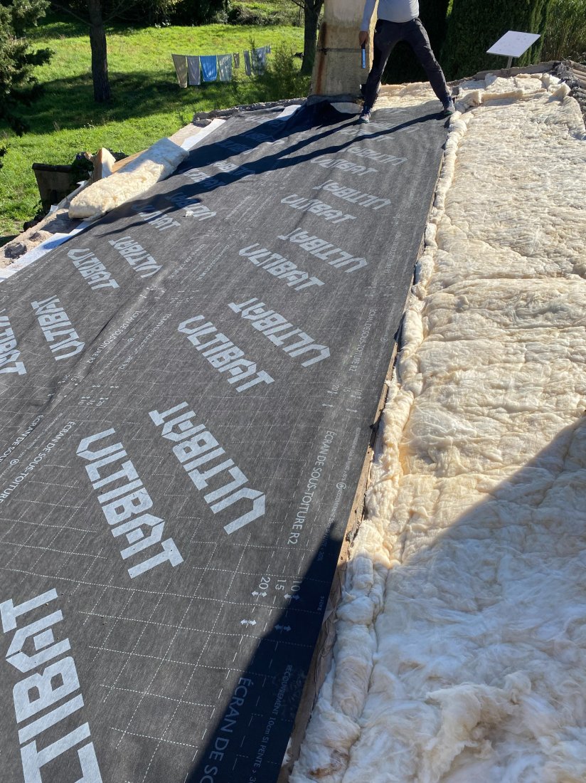 2. Mise en place d’un écran sous toiture neuf, barrière essentielle contre l’humidité et la poussière.