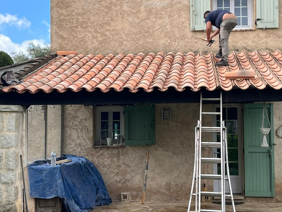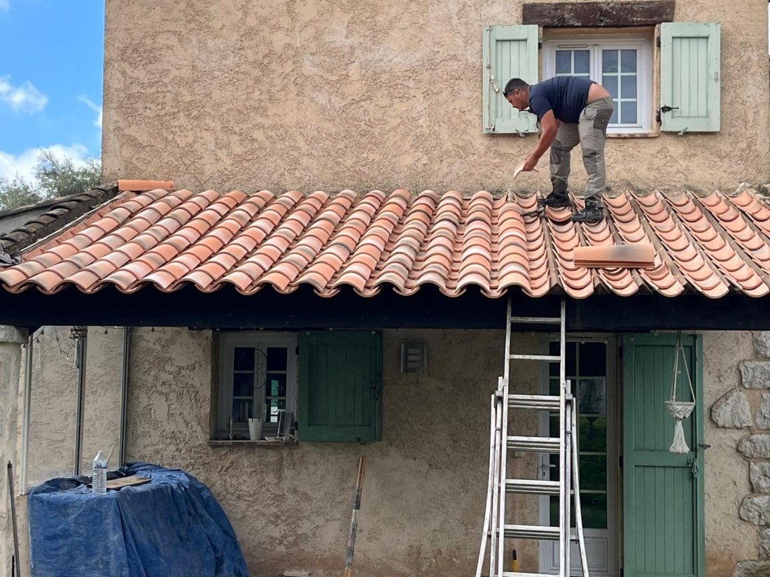Photo de l’équipe Freddy Couverture en intervention sur plusieurs chantiers entre Fréjus et Saint-Tropez, réalisant la rénovation de façades, leur nettoyage et la réfection complète de toitures.