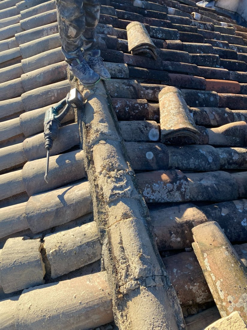Avec les années, les surfaces extérieures se dégradent : les peintures perdent leur éclat et leur capacité à protéger les murs, tandis que la toiture subit l’assaut du soleil, de la pluie et du vent. Sur ce chantier, nous avons constaté des peintures écaillées offrant moins de résistance à l’humidité, ainsi que des tuiles poreuses, rendant la couverture vulnérable aux infiltrations. La problématique était donc double : stopper l’évolution de ces dégradations tout en rendant à la maison son aspect soigné d’origine. Il fallait choisir des matériaux adaptés au climat local, assurer une préparation minutieuse des supports, et intervenir avec précision sur la couverture pour garantir étanchéité et longévité.