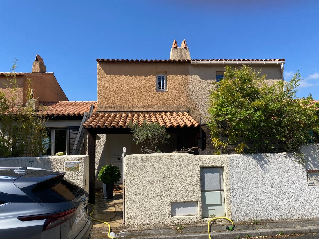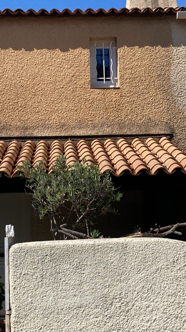Nettoyage soigneux de la toiture et de la façade d’une maison provençale au Plan-de-la-Tour, réalisé par FREDDY COUVERTURE, pour un résultat éclatant tout en préservant les matériaux d’origine.